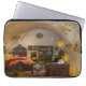 The sleeve is made of nice feeling material and seems very durable. I'm not sure how easy it'll be to clean, but the construction seems sound and the fabric is quick thick. I also like the double zipper. The printing is lovely and appears durable. The white on black contrast is nice, and the design very elegant.