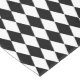A classic harlequin pattern made up of black and white elongated diamond shapes. This whimsical design symbolises fun, mischievousness, entertainment, and more. These contrasting diamonds create a charming pattern on this custom tablecloth. You can adjust the pattern size to any size you prefer and add a background colour to make this modern style table accent unique.