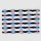 A mid-century inspired design featuring a harlequin diamond pattern in blue, dusty lilac, black and white.