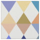 Mid-Century Modern Harlequin pattern of made of stacked triangles forming diamond shapes - shades of soft denim blue, buff and tan on a cream / off-white background