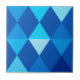 Ceramic tile in a Mid-Century Modern Harlequin pattern of stacked triangles forming diamond shapes - shades of pale chambrey to light denim blue on a medium denim blue background