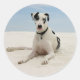 Aww....who can resist the face of a Great Dane Puppy Dog! These fun canine stickers features an image of a black and white Harlequin Great Dane dog resting on a sandy beach with a pretty blue sky background. She is ready to help you send lots of love to friends and family.
