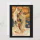 A vintage flat card with a beautiful lady costumed in a harlequin print dress and a cloak with a skull and cross bones. Pumpkins with wide open eyes are behind her. On the image it says The Magical Hallowe'en. Feel free to customise this card.