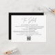 This wedding details enclosure card features a modern bohemian font and simple minimalist design with a bold black and white colour combination and easy to scan QR code. Easily change up *most* wording to meet the needs of your event and change the colour on the backside to better match your event.