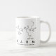 Harm spelled out in amino acids as H A R M (Histidine Alanine Arginine Methionine) on a mug for the scientist in you.