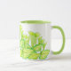 This combo mug's design is based on a painting titled 'Harmony in Green' by me. It is set in a Hosta garden, on the brink of Summer when the leaves are in different stages of evolution, from tightly curled infant leaves to fully unfurled mature leaves. It has been coloured in many shades of green to celebrate the confluence of Spring and Summer.