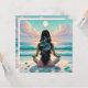 Beautiful ai art depicting a gorgeous woman meditating on the beach with pina and blue clouds, ocean waves, white sand and sea glass.