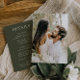 HARMONY | Olive Green Modern Minimalist, wedding details information template enclosure photo card. Designed to coordinate with a vellum invitation overlay.