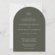 HARMONY | Olive Green wedding invitation. Template features, soft beige typography with delicate branch monogram illustration.