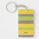 Three-color design with harmonious stripes. Clean lines in three strong colors for your key chain. Add your name or a quote at the bottom and additional information on the back. This variant is the bright color scheme in brown, yellow and green.