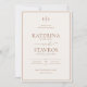 HARMONY | Terracotta Modern Minimalist Wedding Invitation. Features, modern minimalist typography design layout with dainty branch monogram illustration detail.