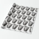 Black and white harp icon with Celtic knot decoration seamless pattern background.