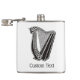 Black and white harp icon with Celtic knot decoration. Custom Text.