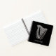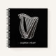 Black and white harp icon with Celtic knot decoration. Custom Text.