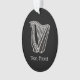 Black and white harp icon with Celtic knot decoration. Custom Text.