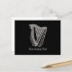 Black and white harp icon with Celtic knot decoration. Custom Text.