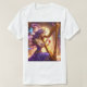 A majestic queen with flowing violet hair plays a golden harp in a luminous hall bathed in warm light. Her ornate purple gown and jeweled crown shimmer as glowing butterflies and musical notes swirl around her, casting a spell of serenity and wonder. This richly detailed fantasy artwork celebrates the harmony of royalty and music, perfect for fans of magical worlds, elegant characters, and ethereal storytelling.