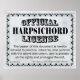 Official Harpsichord License. There are many activities involving various equipment, such as operating an automobile, aeroplane, etc., that require specialised training and licenses. Making music is something that usually requires training: lessons, practice, and rehearsals. Shouldn't it be required of the prospective musicians that they receive a license to operate the equipment, i.e., their musical instrument?