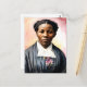 Postcard features original watercolor portrait artwork of Harriet Tubman (1822 - 1913), former slave, American abolitionist, and social activist. Born Araminta Ross, Harriet Tubman is a noteable African American historical figure known for 'The Underground Railroad,' helping enslaved people escape slavery.