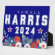 Let your vote be seen when it comes to the 2024 Presidential election! Pretty tabletop sign design features "Kamala Harris" and "2024" with a patriotic red, white and blue floral border on bright blue background. Perfect for home or office.