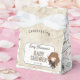 Celebrate your little one on the way with this magical baby shower favor box featuring a sweet chibi-style illustration inspired by Hermione Granger from the Harry Potter series. The design showcases the clever witch wearing her Gryffindor robe and holding a wand, surrounded by pastel starburst accents. A parchment-style background frames the favor box details, while the back is decorated with whimsical wizarding icons like books, cauldrons, and magical creatures. Customize with the honoree’s name and event date to create an enchanting favor box perfect for any Harry Potter-loving family.