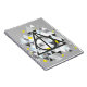 Check out this geometric styled Deathly Hallows symbol, surrounded by grey, yellow, and blue triangles.