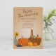 A beautiful, hand-drawn design that's perfect for any fall celebration. Pumpkins in and around a brown, wicker basket are joined by a sun flower poised in a bottle.
