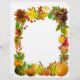 Pumpkins, ripe pears, sunflower blossoms and berries form a fall harvest border.