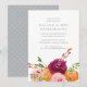Simple and elegant floral bridesmaids brunch invitations feature your luncheon or brunch details in chic grey, with a cluster of vibrant autumn-hued watercolor peonies and greenery along the bottom.