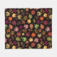 Harvest Fall Autumn Leaves Pattern on Black Fleece Blanket