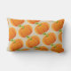 This throw pillow is shown in a harvest fall pumpkin print with a beige background colour.
