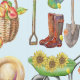 Harvest Gardening Tools Fruit And Flowers Wallpaper