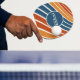 Harvest Gold 1970's Stripes Ping Pong Paddle