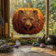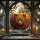 Decorate your home for the spooky season with this elegant Harvest Guardian Bear window cling. Featuring an ornate, golden filigree bear carved into an autumn pumpkin, this design adds a touch of mystical woodland magic to your Halloween or Thanksgiving decor. It's the perfect statement piece for lovers of folklore and unique, enchanting art.