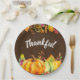 Harvest Pumpkins and Autumn Leaves Border Thankful Paper Plate