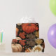 A rich, vibrant illustration showcasing an assortment of pumpkins in various shapes and colours, surrounded by autumn leaves, berries, and seasonal flowers. The warm hues of orange, yellow, and brown contrast beautifully against the dark background, evoking the essence of fall. This intricate composition brings the abundance of the harvest season to life.