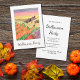 Harvest pumpkins Halloween party Invitation, with a colourful folk art piece by artist "Indiamoss". With warm autumn colours of orange yellow and red, this item has bold brown lettering. A fun invite for your fall harvest or Halloween party.