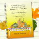 Keep a gratitude or other meditation journal with this pretty notebook ready to personalize with your own cover text along with a family or personal name. Watercolor style image of gourds and pumpkins with leafy fall foliage heaped on a white table. Sunny orange and yellow gradient style background sets it all off
