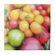 Freshly harvested organic heirloom tomatoes in an assortment of colours.