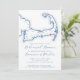This casual rehearsal dinner invitation features a modern, elegant navy blue Cape Cod map theme, perfect for a wedding in Harwich Port, MA. Celebrate your pre-wedding gathering in style with this chic design that sets the tone for a memorable evening. Ideal for venues like Wychmere Beach Club, Wequassett Resort, and Chatham Bars Inn. The sophisticated map adds a personal touch to your Cape Cod celebration. Artwork by Coastal Map Designs.