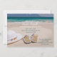 A bachelorette party invitation featuring a lovely, white, straw hat and matching shoes at the seashore. Perfect for a weekend getaway or destination party. The card is easy to customise with your wording, font, font colour and choice of six paper types.