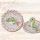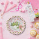Serve up some sweetness with these adorable personalised paper plates! The centre of the plate features a charming watercolor hatching dinosaur wearing a cute pink bow, while the rim is decorated with a playful green dino footprint pattern on a pink background. The plate proudly announces "IT'S A GIRL!" and can be customised with the honoree's name and baby shower date. These sturdy, disposable plates are perfect for serving cake or snacks and are a delightful addition to your "Girl Can Roar Too" dinosaur-themed celebration, ensuring every detail coordinates beautifully!