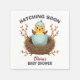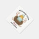 Adorable baby shower napkins featuring a sweet yellow chick hatching from a blue eggshell in a cosy nest, surrounded by delicate pink spring blossoms.