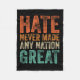 Hate Never Made Any Nation Great Funny Anti-trump Fleece Blanket