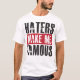 Haters Make Me Famous. That’s right; haters make me famous. Heard of “any bad press is good press”? Well, it’s basically the same concept. There's a variety of products that range from t-shirts, shirts to mugs and more that use this design. It’s a great gift for anyone close to achieving that goal, to become famous with the help of haters. After all, haters do make me famous. This design comes in red and blue.