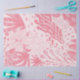 Soft blush pinks layered with hand-drawn botanical lines create an atmosphere of tenderness without fragility. The composition feels airy, yet intentional. Feminine, but never ornamental.