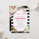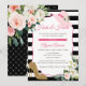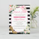 Hats n heels bridal shower invitation, black and white chic stripe, hot pink and blush pink and white and pink floral. Fully customisable