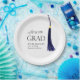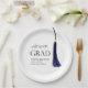 Decorate your graduation party with these clean, minimalist "Hats Off To The Grad" paper plates featuring a deep blue & gold graduation tassel and elegant typography.