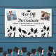 Congratulate your grad with this high quality vinyl sign featuring graduation caps tossed in the air. Add your grad's name, class of and 2 photos to create a one of a kind banner. The current background colour is a very light grey - but easily change this by clicking on customise and scrolling to the colour picker. A great welcome sign for graduation party guests - hang on a wall, balcony, between trees, on the porch, garage, etc - it's generous size and high quality will surely make a statement.