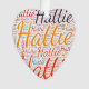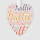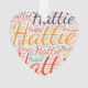 Hattie. Show and wear this popular beautiful female first name designed as colourful wordcloud made of horizontal and vertical cursive hand lettering typography in different sizes and adorable fresh colours. Wear your positive american name or show the world whom you love or adore. Merch with this soft text artwork is a great present, not only in womens history month, or birthday gift.